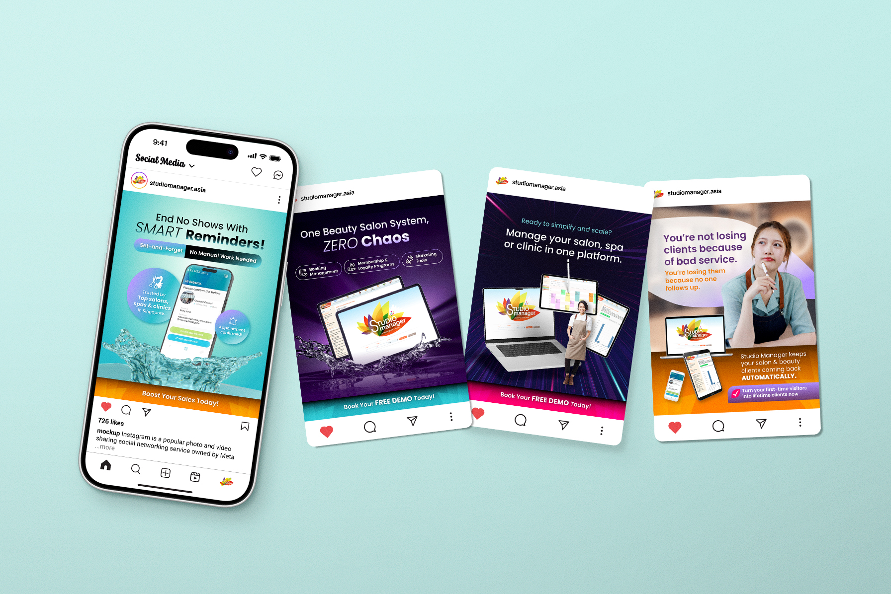 We strengthened Studio Manager’s brand presence across social platforms through creative visuals and conversion-focused campaigns.